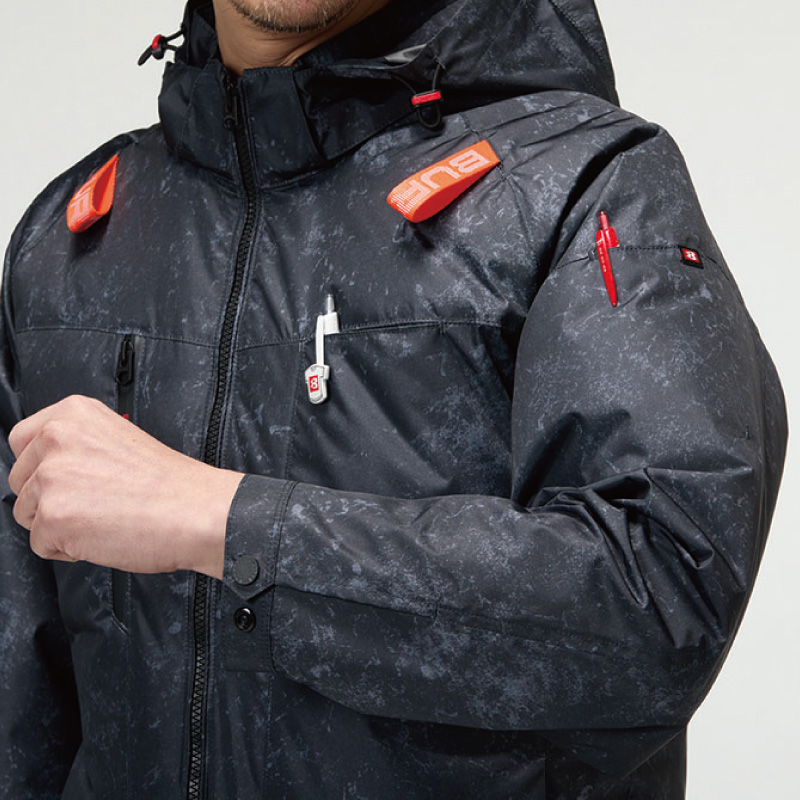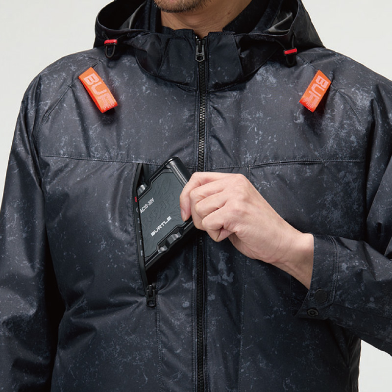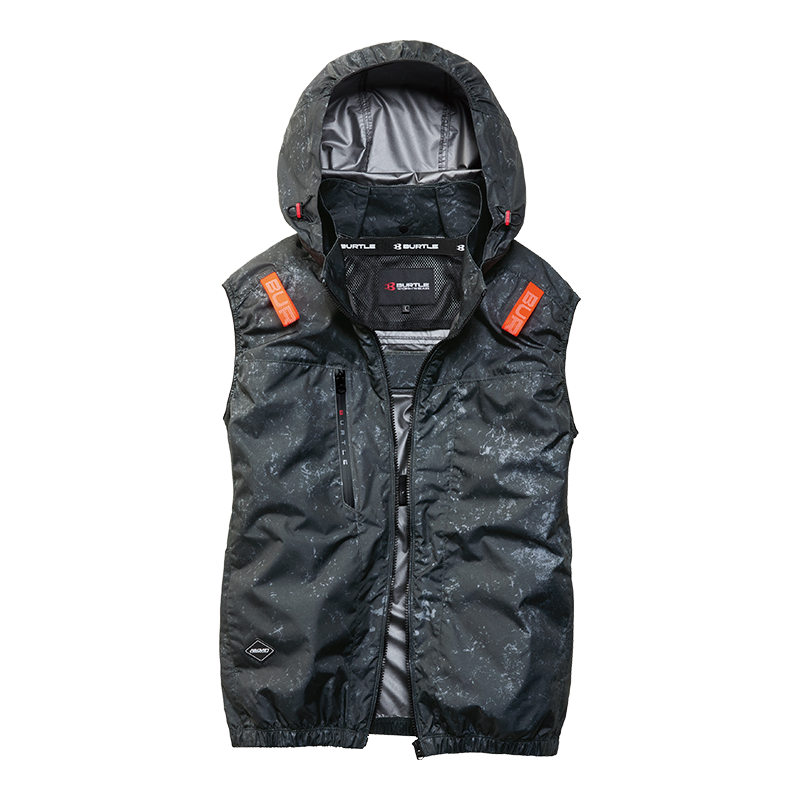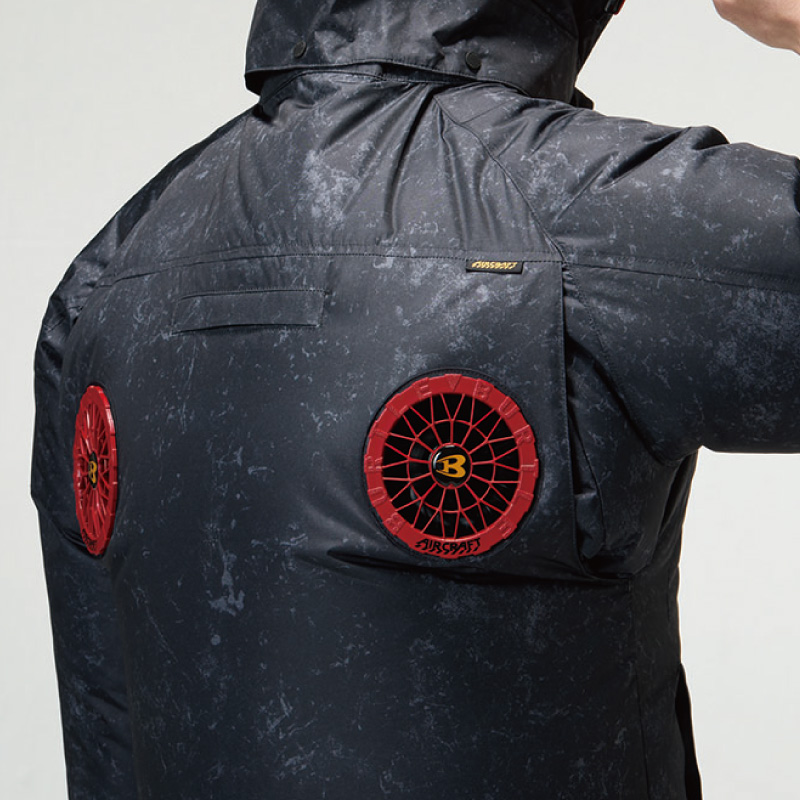 FEATURE 特徴01 ワークギアの装着への順応性をもたらすハイバックファン取付設計モデル02 軽量、撥水性、アルミC加工による遮熱性(-8°C)を備えたソフトシェル素材03 背ヨークに保冷剤を収納可能な通気エアダクトポケットを装備DETAIL 詳細COLOR VARIETION カラーバリエーション