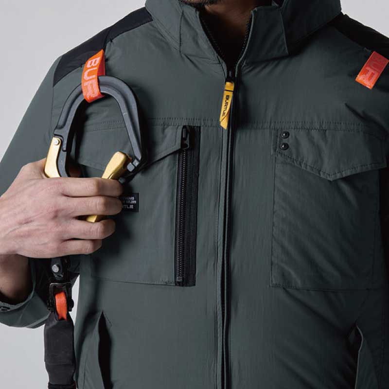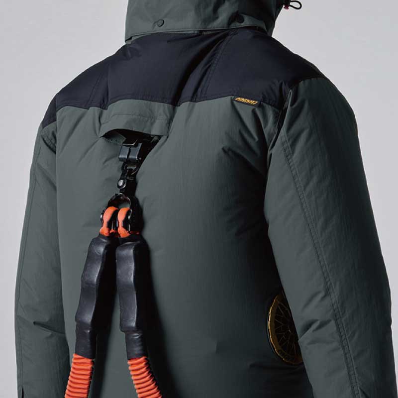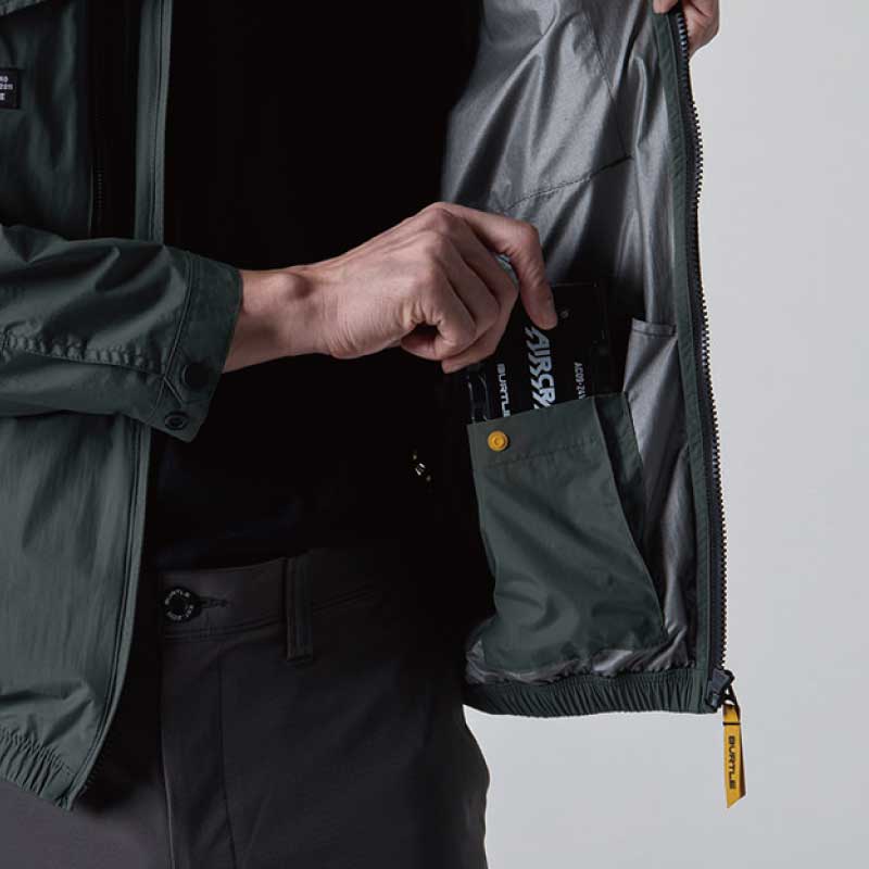 FEATURE 特徴01 サイドバックファン取付設計モデル02 遮熱効果(–9度)に優れたアルミC加工03 背ヨークに保冷剤を収納可能な通気エアダクトポケットを装備DETAIL 詳細COLOR VARIETION カラーバリエーション