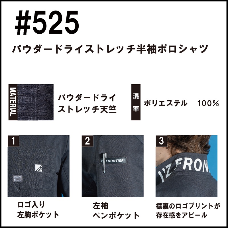 作業服専門店だいまつネットストア >2026SS NEWITEM >【I'Z FRONTIER(アイズフロンティア)】【春夏作業服】 P.D.ストレッチ半袖ポロシャツ 525