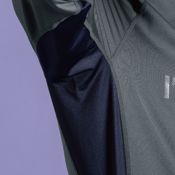 FEATURE 特徴01 ハイレベルな吸水速乾加工を施し、年間通してさわやかな着用感を実現02 ワールドクラスの大手スポーツブランドも採用実績のあるハイスペック素材を採用。03 ハイレベルな伸長率(タテ約48%・ヨコ約52%)と伸長回復率(約96%)を発揮COLOR VARIETION カラーバリエーション