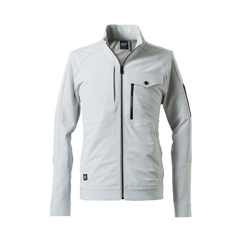 FEATURE 特徴01 1枚の素材ながらも通気度=2.6ccを誇る高い防風性と適度な透湿性を併せ持ち、ムレ感の少ない快適性を発揮。02 伸長率タテ約43.8%、ヨコ約26%を誇るハイレベルな全方向ストレッチ性能03 素材表面は高密度フラット、裏面は3Dポイントコンタクトをそれぞれ形成する二重織り構造。COLOR VARIETION カラーバリエーション