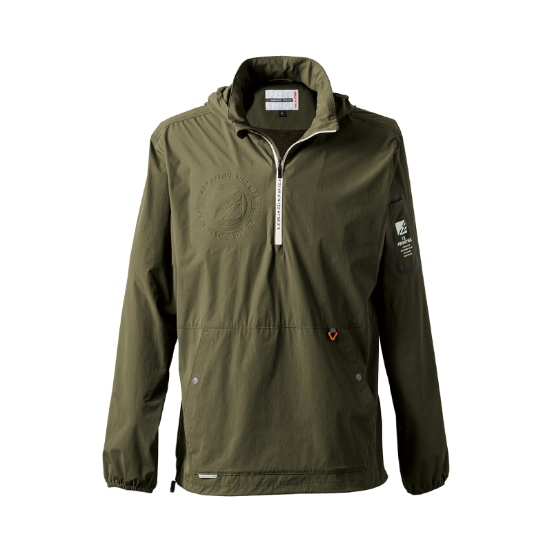 FEATURE 特徴01 特殊な無撚糸を使用し肌馴染みの良いしなやかな風合いを実現。02 伸長率タテ約33%・ヨコ約31%、伸長回復率約88%を誇るハイレベルな全方向ストレッチ性能03 衿はフード収納仕様。2タイプの着こなしが楽しめます。COLOR VARIETION カラーバリエーション