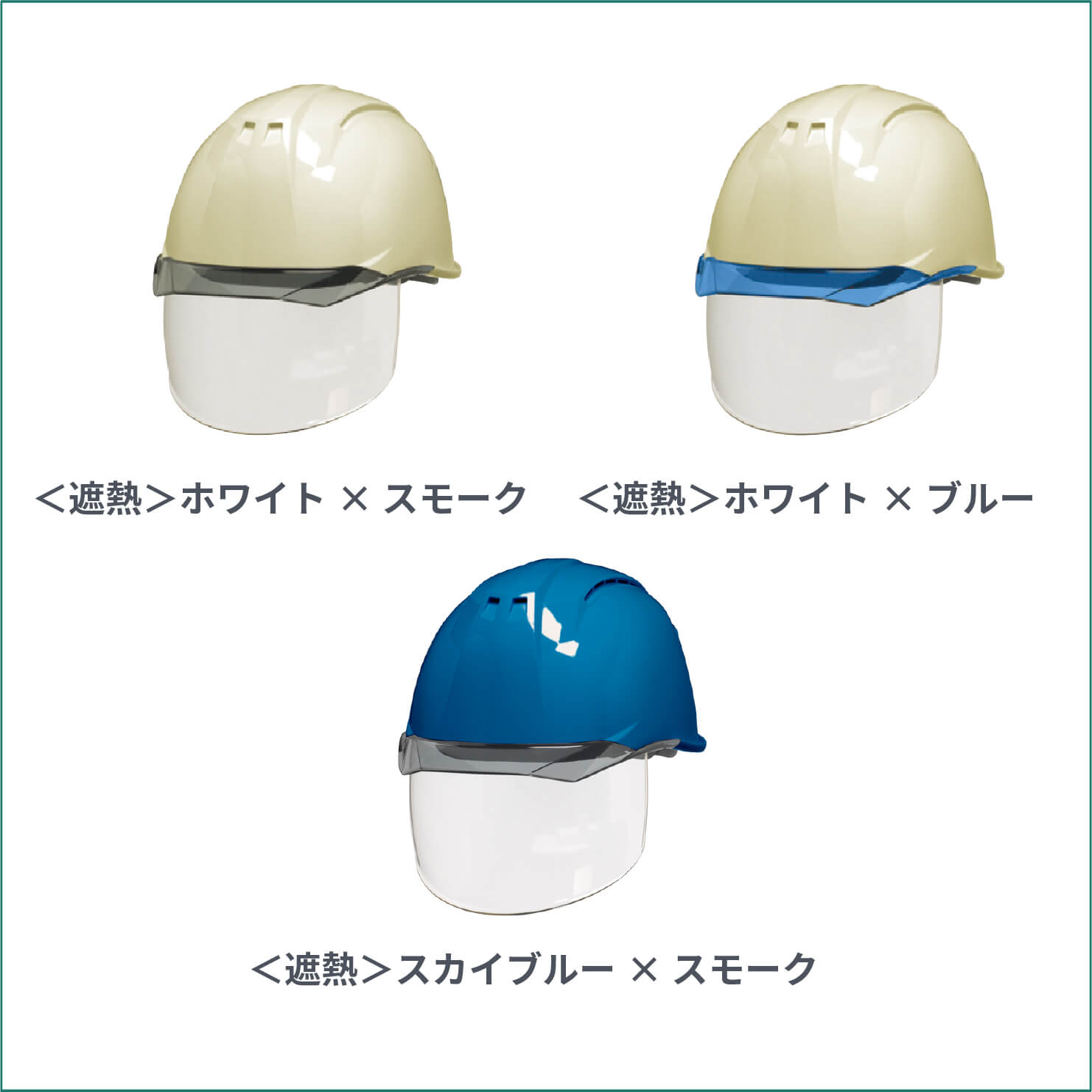 飛来物落下用、墜落時保護用、新型シールド機構、通気孔付、遮熱対応あり、雨垂れ防止溝付き、ワンタッチあご紐