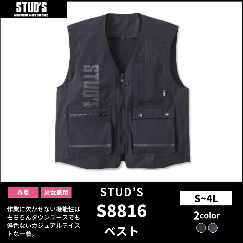 【STUD'S(スタッズ)】【春夏作業服】CORDURA® 縦横ストレッチマルチポケットベスト S8816