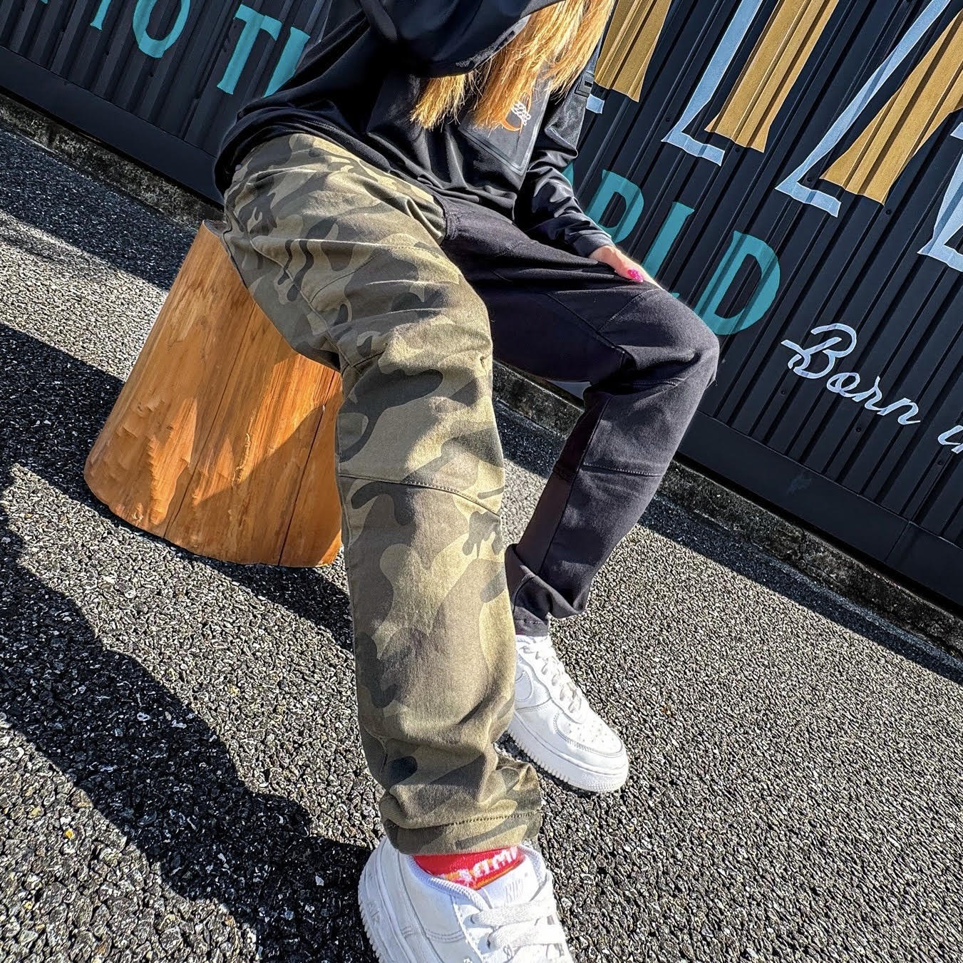・ウエスト総ゴムと紐で調整可能、ベルトループもあるためフィット感やスタイル調整が自在。