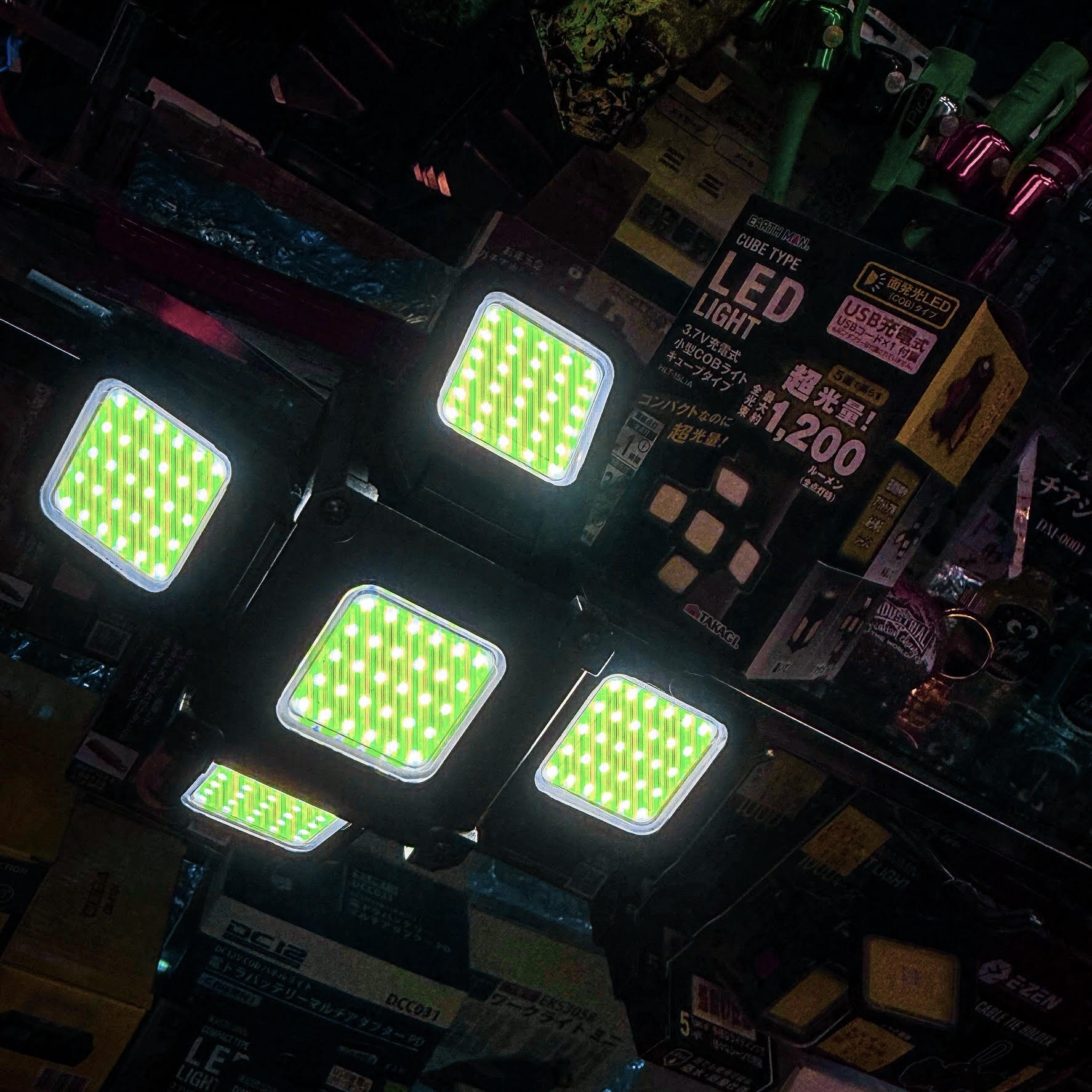 畳めて広がる三面発光。暗所を一気にフル照射。
