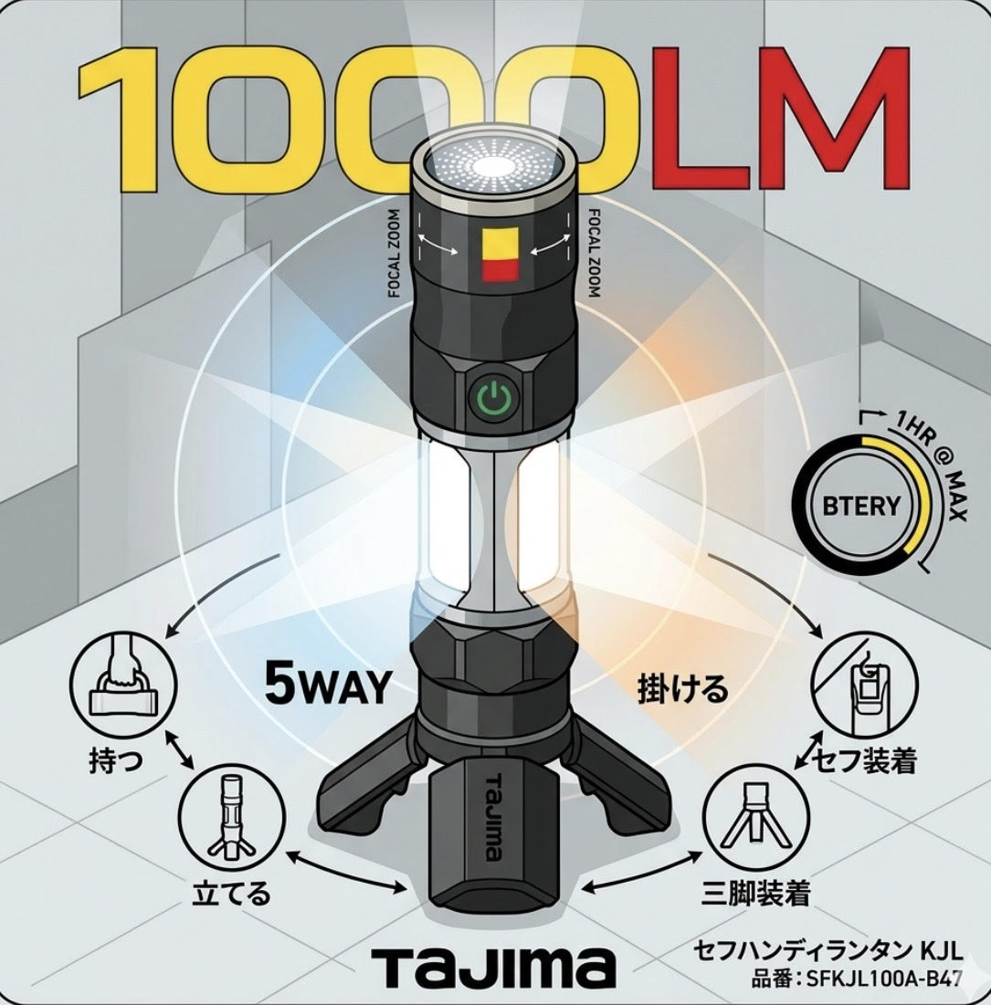 ・両手フリーで作業効率UP: タスキ掛け装着により手が自由になり、夜間作業やアウトドアで活躍。