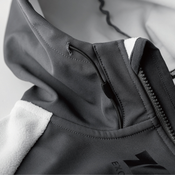 FEATURE 特徴01 高密度タフタとフリースのボンディングで防風性と保温性も確保02 切替部分に反射材のパイピングを用い暗所での視認性も確保。03 ※ボンディング素材の為、ストレッチ性は軽微となります。COLOR VARIETION カラーバリエーション